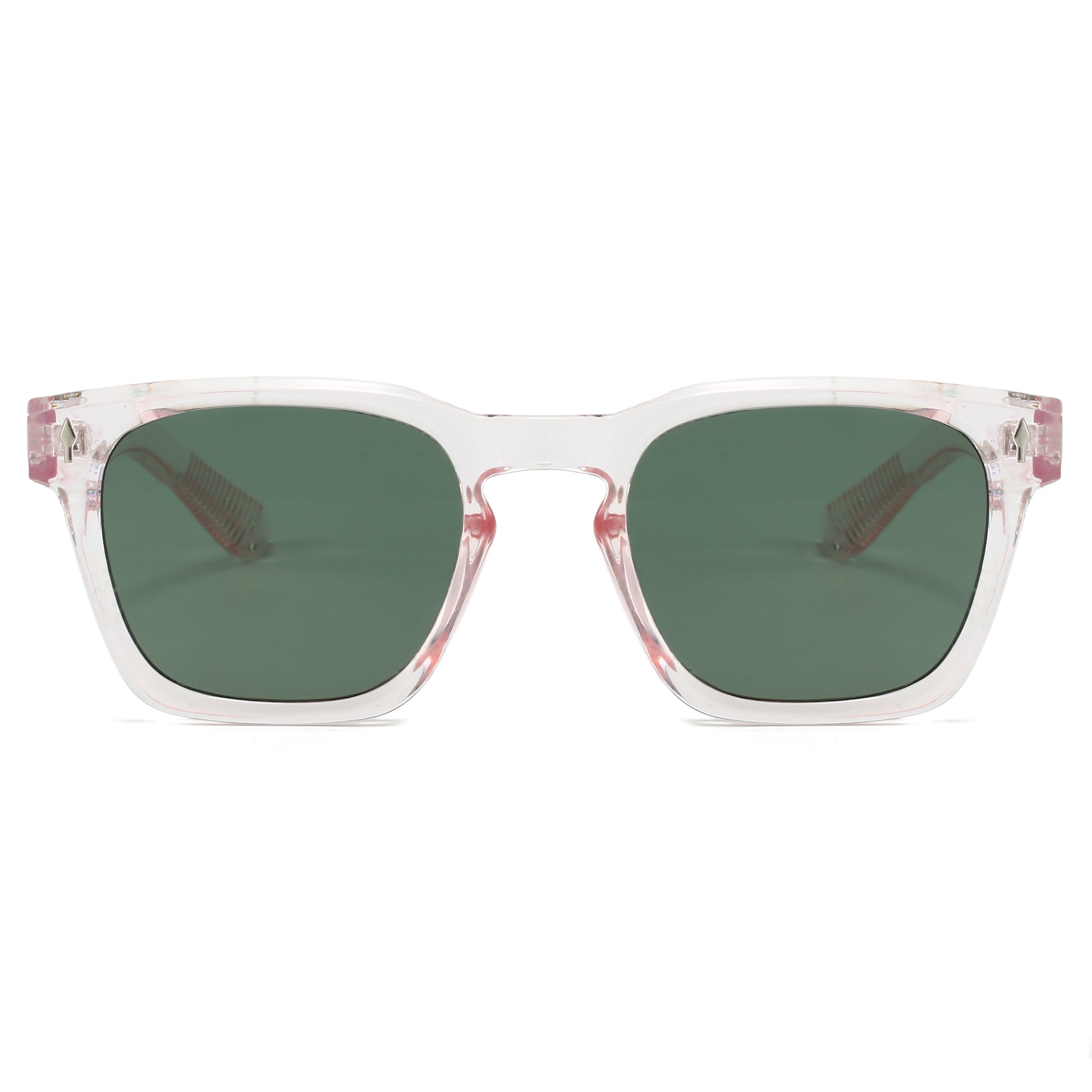 THE SHORE evokes the calm elegance of coastal mornings. Its translucent rose-tinted acetate frame offers a soft, refined glow, while the matching greenish lenses create a unique contrast for a standout yet subtle statement.