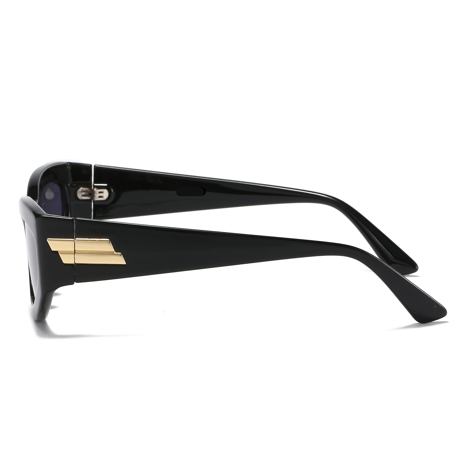 Crafted from high-gloss deep black acetate and accented with luxurious gold inlay detailing, The Solana is designed for those who embrace confidence and presence in every setting. Its dark smoke lenses enhance the allure while providing superior UV protection.